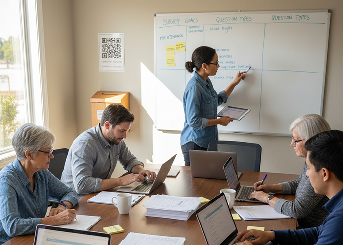 For example, one goal could be to measure satisfaction with landscape care. Another could be to spot safety concerns in common areas. Since every question should tie back to a goal, the final set is easier to analyze and explain.